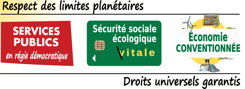 Ce système de répartition de la richesse collective, fondé sur les principes d’universalité, de justice sociale et de gestion démocratique mis en œuvre en 1945 au sein du régime général de la Sécurité sociale, pourrait ainsi ouvrir la voie à une réorganisation du système de production de biens et de services autour de la réponse aux besoins collectif plutôt qu’en fonction de la rentabilité financière des investissements pour les actionnaires.
