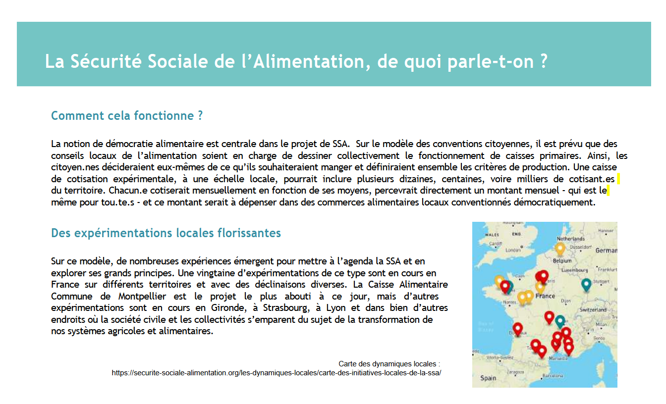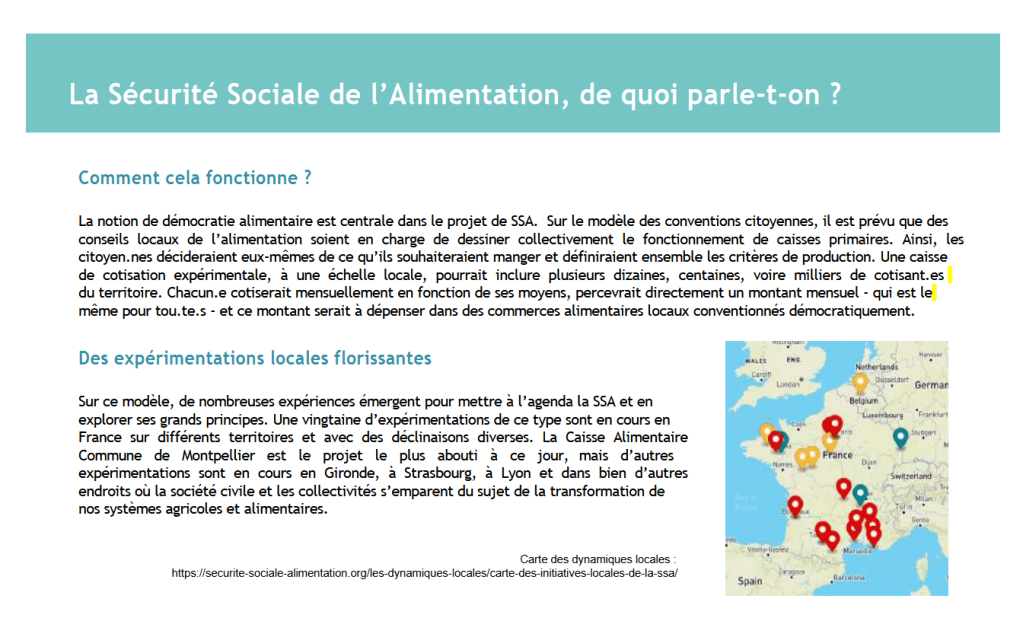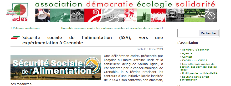 Vers une expérimentation d’un système de Sécurité sociale de l’alimentation à Grenoble La revue ADES de Grenoble annonce la mise en œuvre de l’expérimentation https://securite-sociale-alimentation.org/
